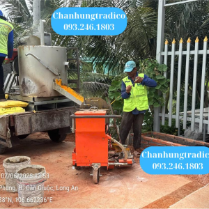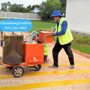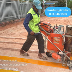 - Thi công bằng máy chống sơn nhiệt dẻo chuyên dụng hoặc thi công thủ công với khuôn.